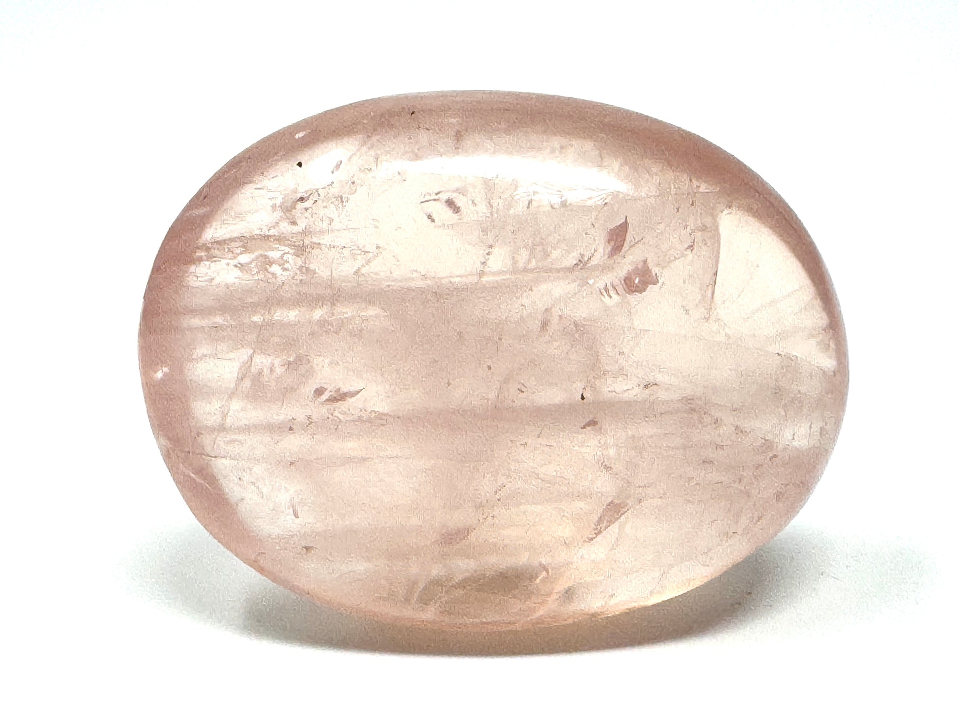This beautiful translucent gemmy Rose Quartz Pebble measuring 5.4cm long has been carefully cut by artisans and hand-polished to emphasise its clarity and wonderfully mellow pale-pink shade.