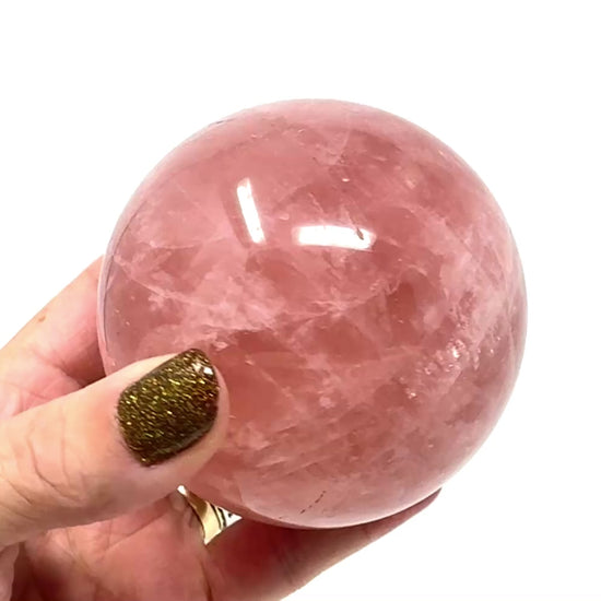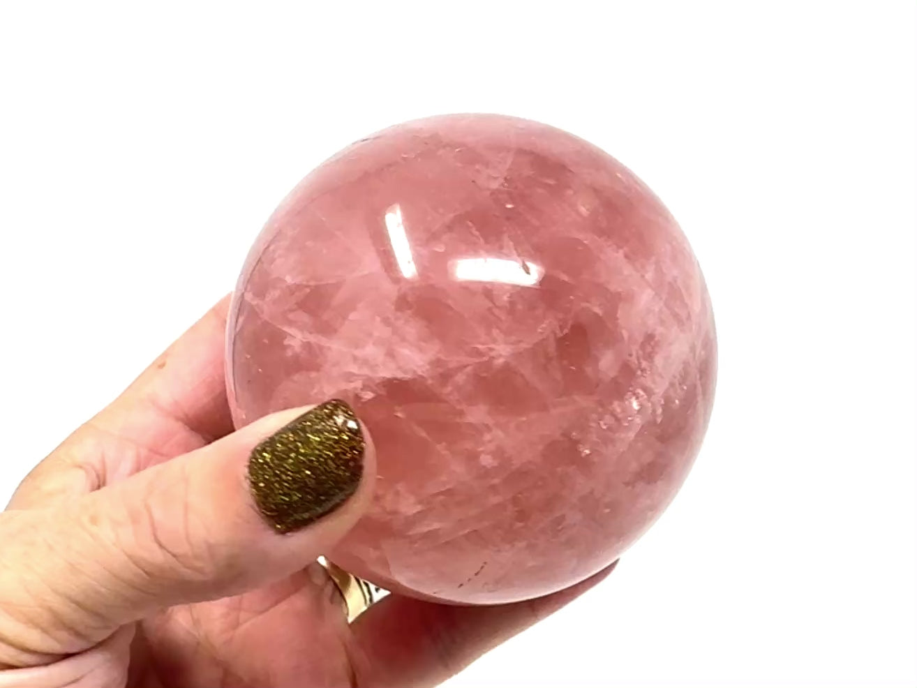 This beautiful, large Rose Quartz Sphere measuring 7.8cm in diameter has been carefully cut by artisans and hand-polished to emphasise its clarity and wonderfully mellow pale-pink shade.