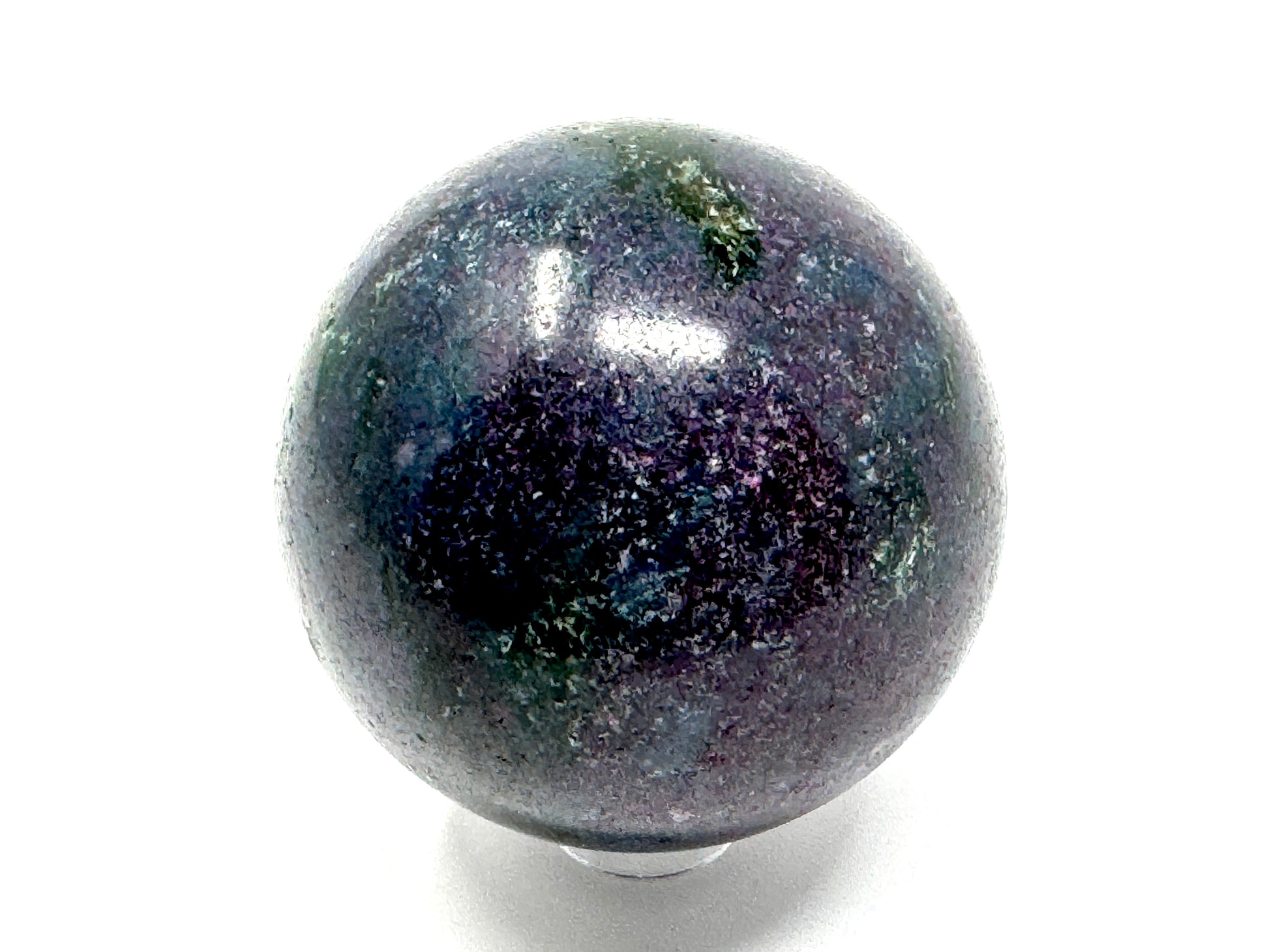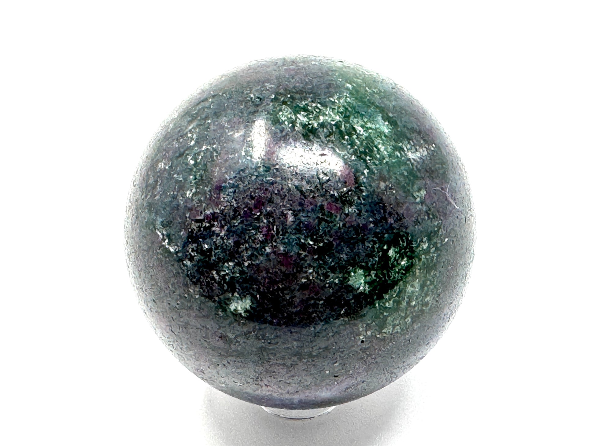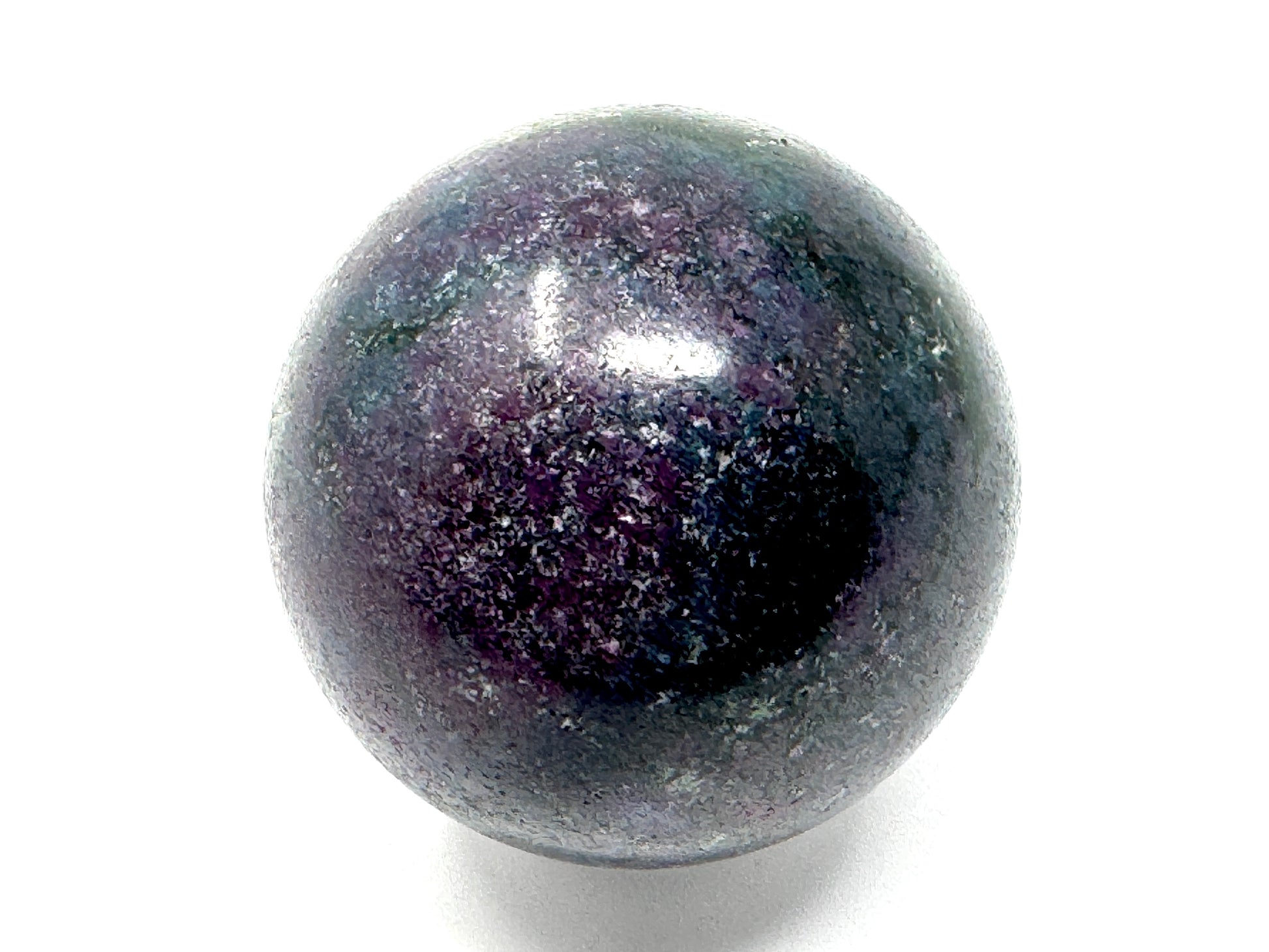 This striking Ruby in Kyanite Sphere measuring 5.4cm in diameter displays stunning deep blue Kyanite speckled with bright red Ruby inclusions.