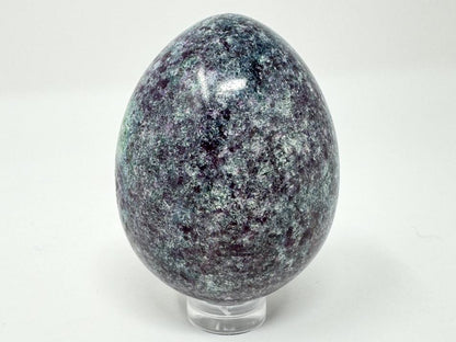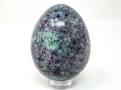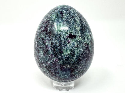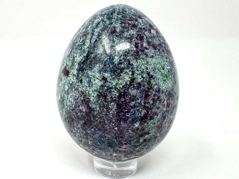 This striking Ruby in Kyanite Egg Crystal measuring 5.4cm tall displays stunning deep blue Kyanite speckled with bright red Ruby inclusions.