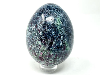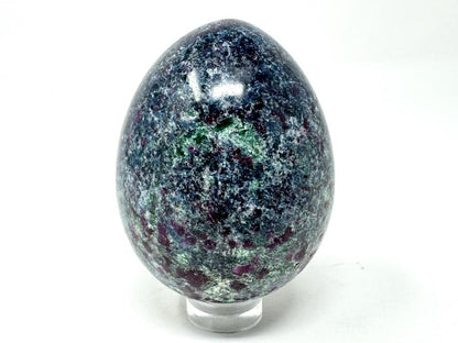 This striking Ruby in Kyanite Egg Crystal measuring 5.5cm tall displays stunning deep blue Kyanite speckled with bright red Ruby inclusions.