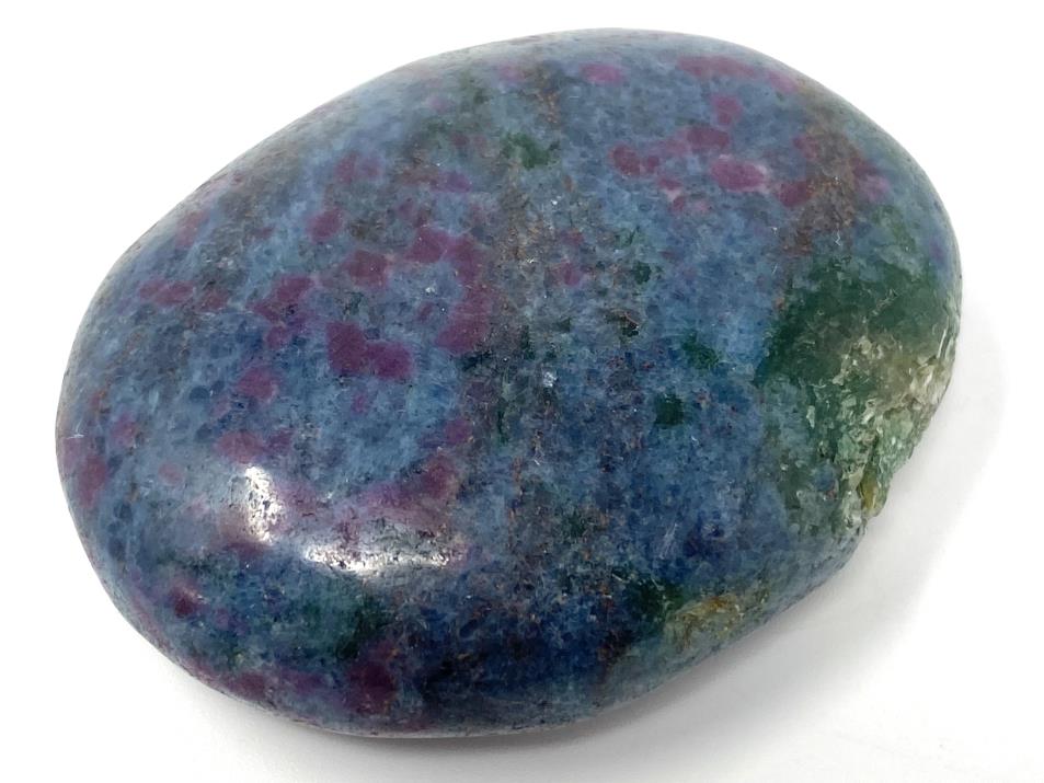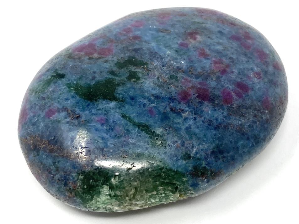 This striking oval-shaped Ruby in Kyanite Pebble (otherwise known as a Ruby in Kyanite Palm Stone) measuring 5.5cm long displays stunning deep blue Kyanite speckled with bright red Ruby inclusions.