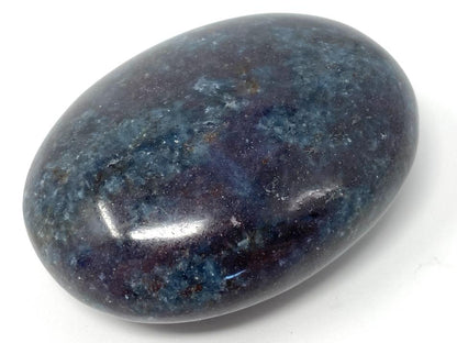 This striking oval-shaped Ruby in Kyanite Pebble (otherwise known as a Ruby in Kyanite Palm Stone) measuring 6cm long displays stunning deep blue Kyanite speckled with bright red Ruby inclusions.