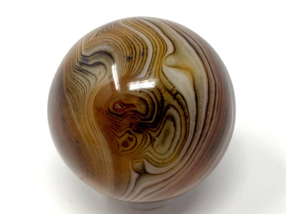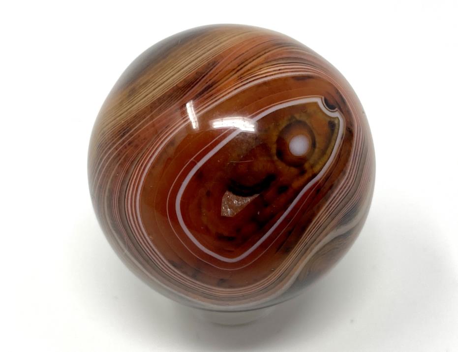 This dainty, gorgeous Banded Agate Crystal Sphere measures 3.8cm in diameter and displays stunning bands of red, orange, white, black, and grey, with patterns similar to Sardonyx and Carnelian.