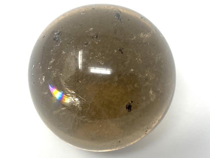 This Smoky Quartz Crystal Ball also displays large, shimmering Quartz rainbows.