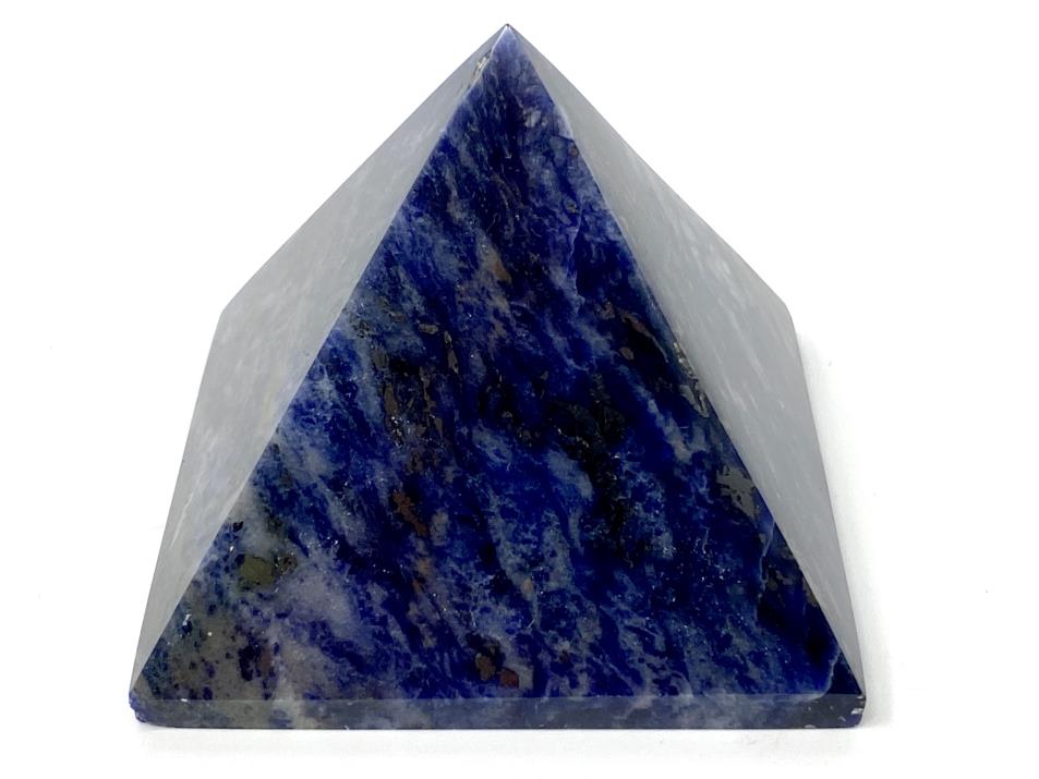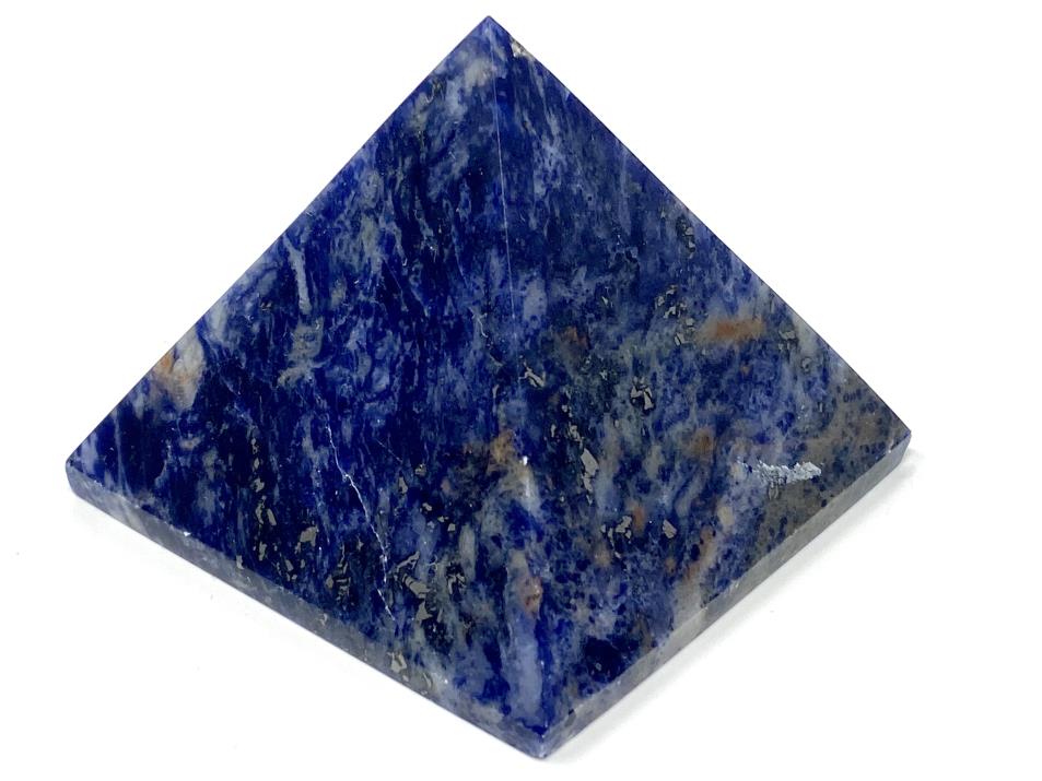 This gorgeous Sodalite Crystal Pyramid with a 6.4cm wide square base displays a deep royal-blue hue, with some shimmering metallic Hematite inclusions as well as striking Black Tourmaline Inclusions.