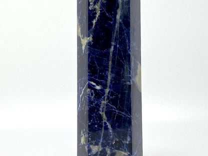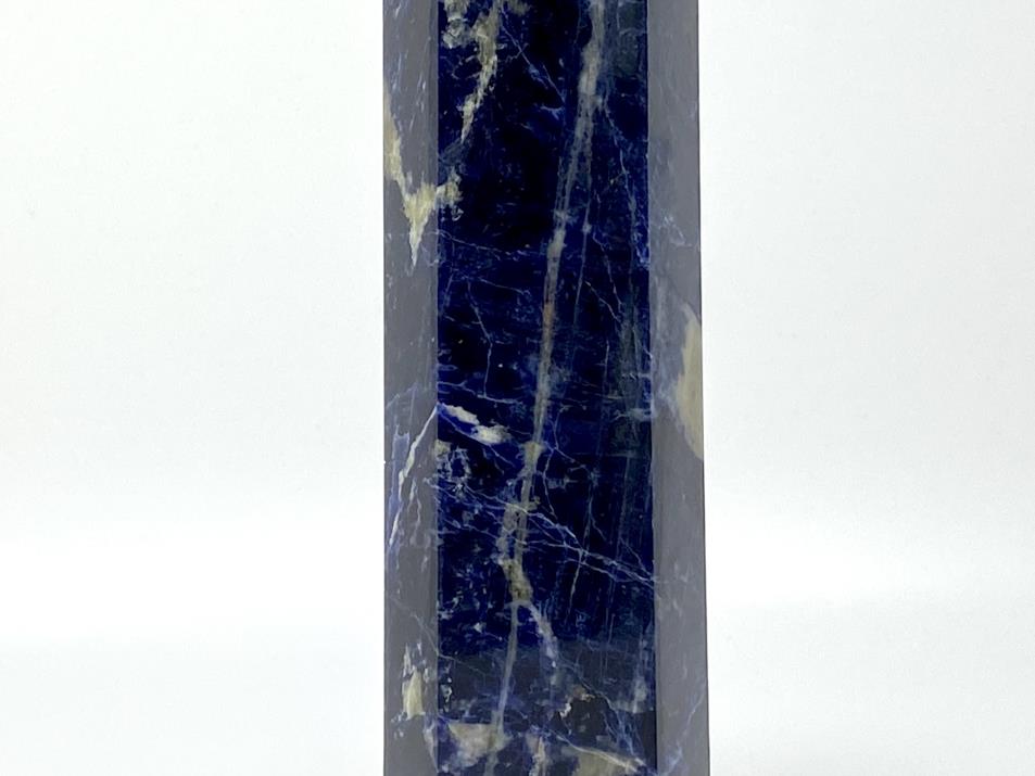 This blue Large Sodalite Point has a smooth, sleek polish and showcases many polished faces and a sharp pointed tip.