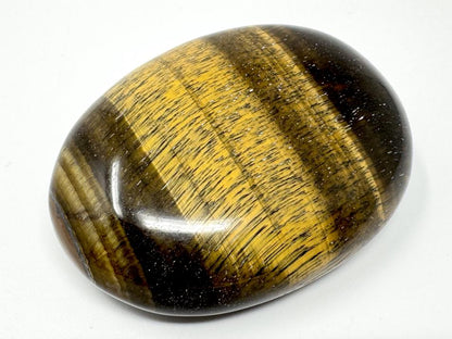 This gorgeous oval-shaped Tiger's Eye Pebble (otherwise known as a Tiger's Eye Palm Stone) measures 6.1cm long.