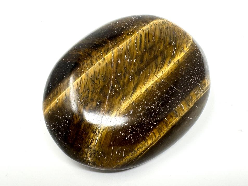 This gorgeous oval-shaped Tiger's Eye Pebble (otherwise known as a Tiger's Eye Palm Stone) measures 6.4cm long.