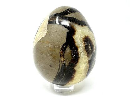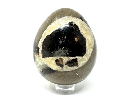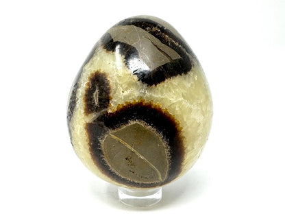 This striking Yellow Septarian Crystal Egg measuring 5.9cm tall has been cut by artisans into a sleek crystal egg shape and carefully hand-polished to enhance its rich earthy grey-brown and yellow tones.