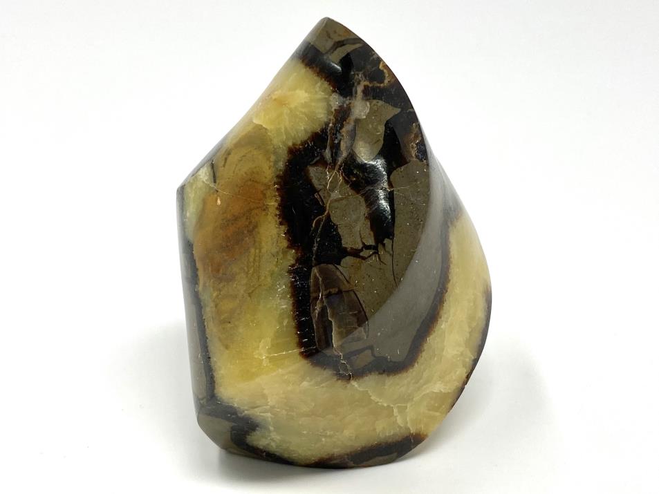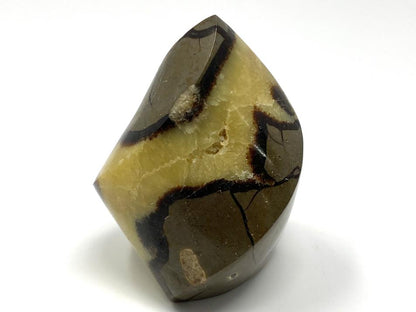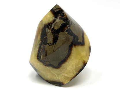 This striking Yellow Septarian Crystal Flame Shape measuring 9.7cm tall has been cut by artisans into a free-standing, sleek crystal flame shape and carefully hand-polished to enhance its rich earthy grey-brown and yellow tones.