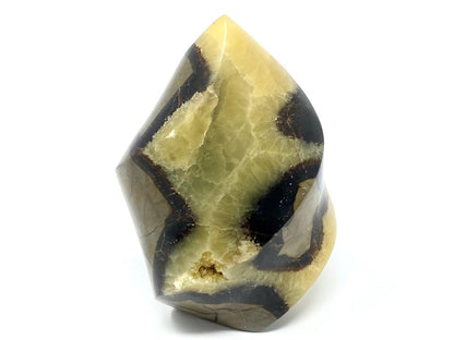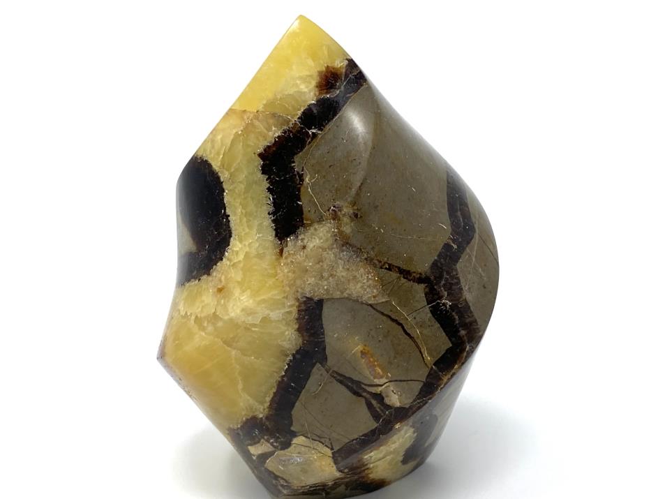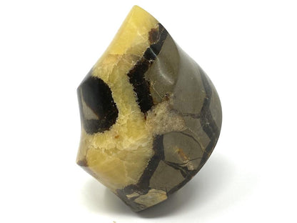 This striking Yellow Septarian Crystal Flame Shape measuring 11.5cm tall has been cut by artisans into a free-standing, sleek crystal flame shape and carefully hand-polished to enhance its rich earthy grey-brown and yellow tones.