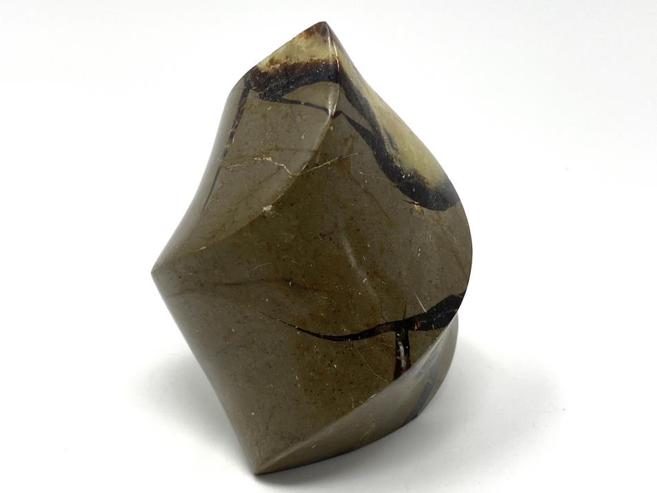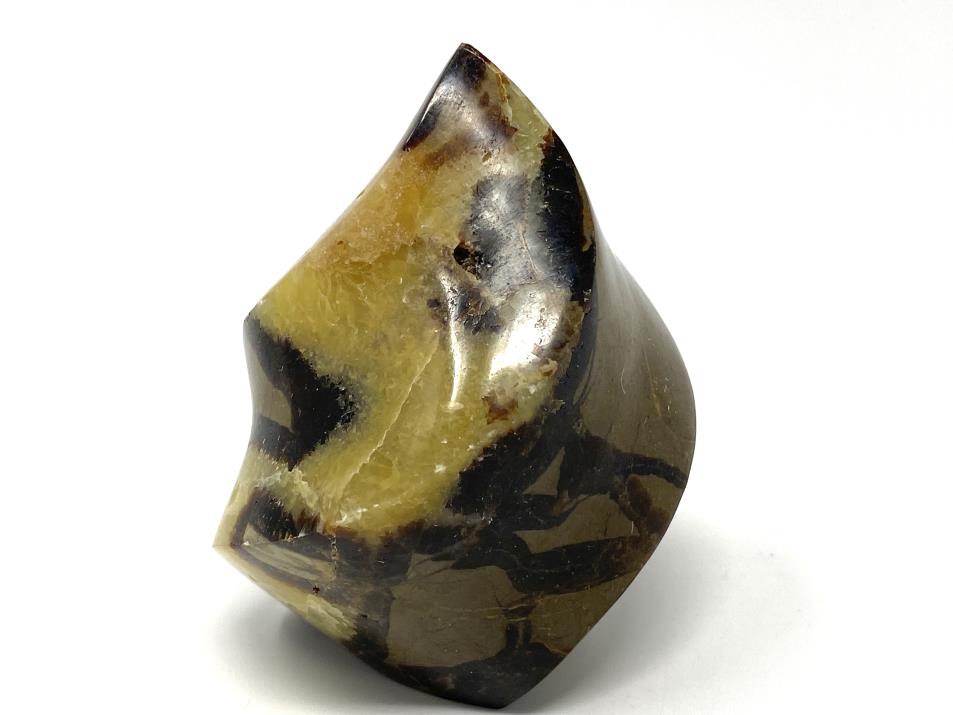 This striking Yellow Septarian Crystal Flame Shape measuring 8cm tall has been cut by artisans into a free-standing, sleek crystal flame shape and carefully hand-polished to enhance its rich earthy grey-brown and yellow tones.